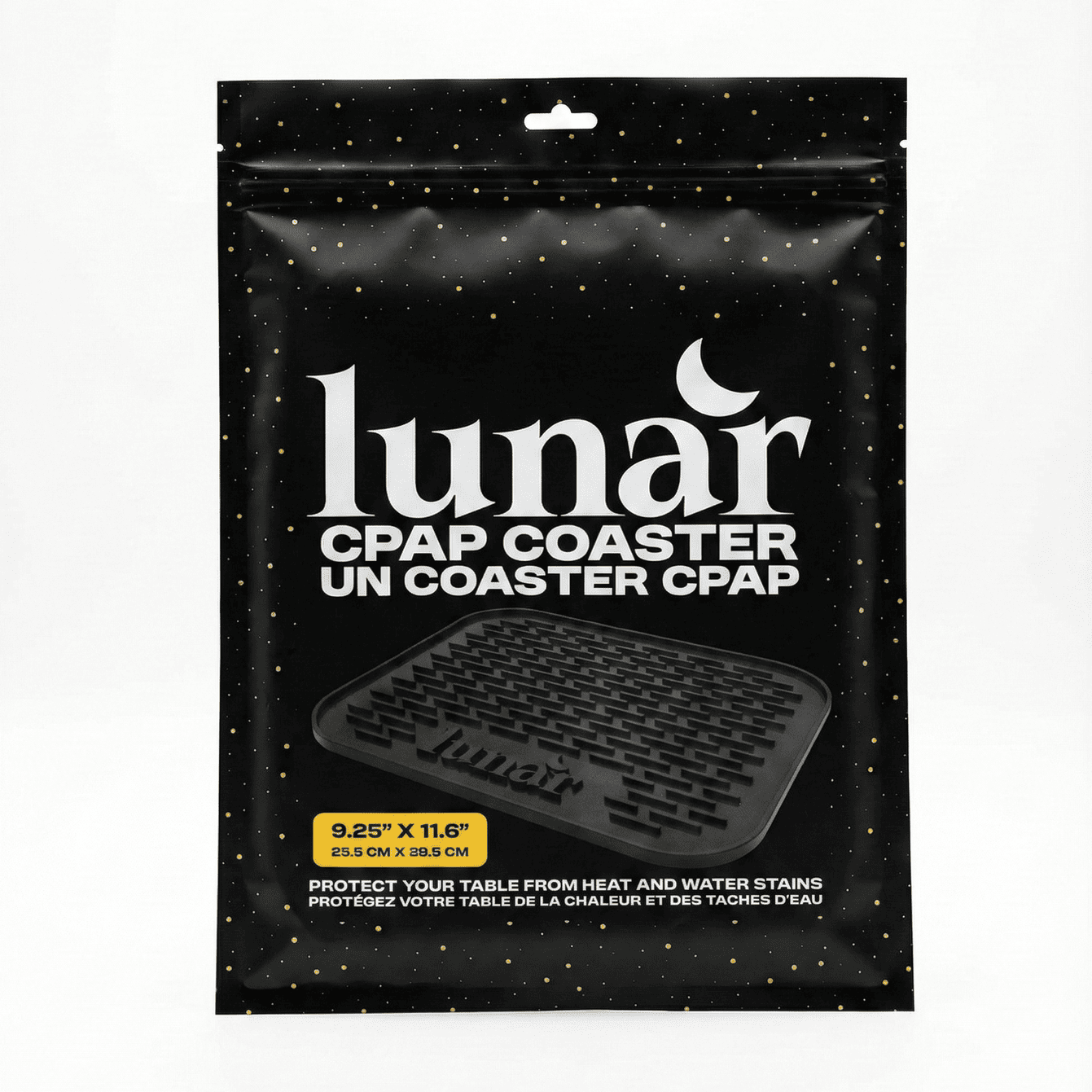 The Lunar CPAP Coaster is an essential accessory designed to protect your furniture while enhancing your sleep therapy setup. Constructed from durable, high-quality silicone, this protective mat acts as a reliable barrier between your CPAP machine and your nightstand. It effectively shields delicate wood and other surfaces from the potential damage caused by water spills, humidifier leaks, and heat marks, giving you peace of mind throughout the night.