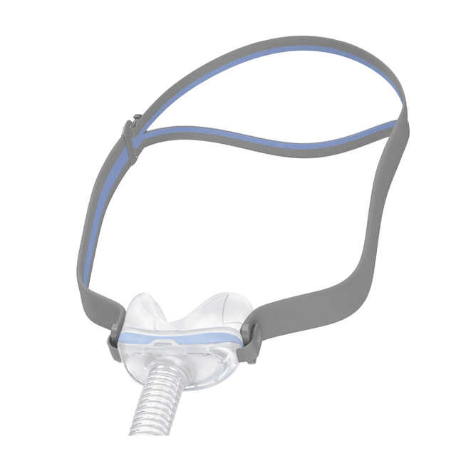 The ResMed AirFit N30 has a basic design and includes a comfortable, under-the-nose nasal cradle and slip-on headgear.