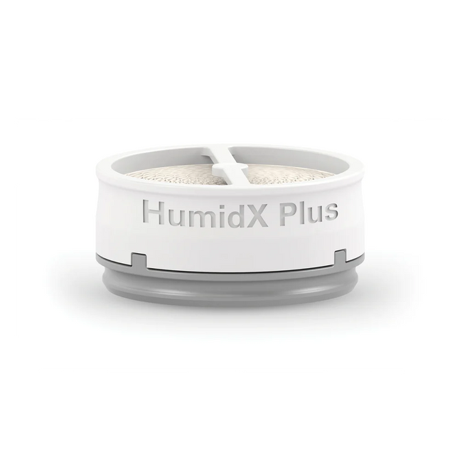 HumidX est le système d'humidification sans eau standard de ResMed, adapté à la plupart des climats. HumidX Plus est destiné à être utilisé dans des environnements secs et à haute altitude où l'humidité est faible.